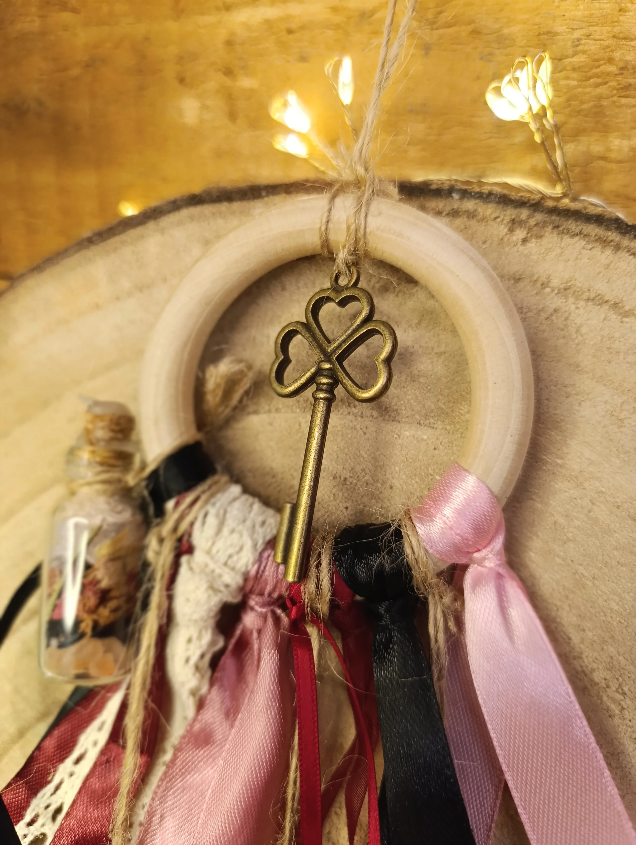 Suspendu Ă une porte, Ă une fenĂȘtre ou dans un espace sacrĂ©, cet anneau veille sur votre foyer avec bienveillance.